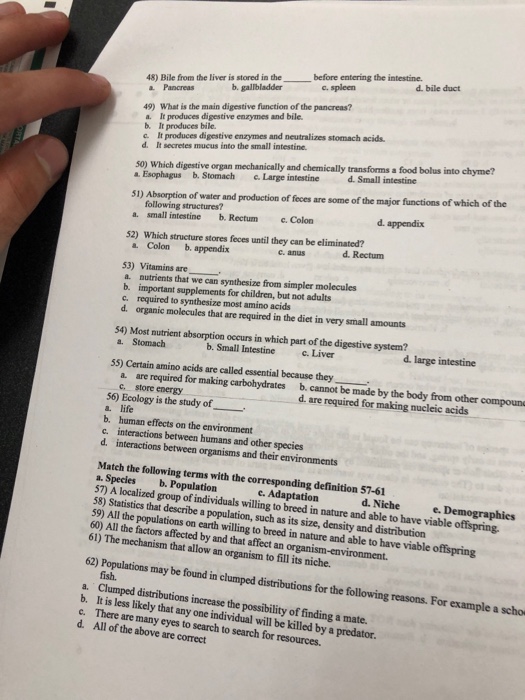 Solved: Before Entering The Intestine. 48) Bile From The L... | Chegg.com